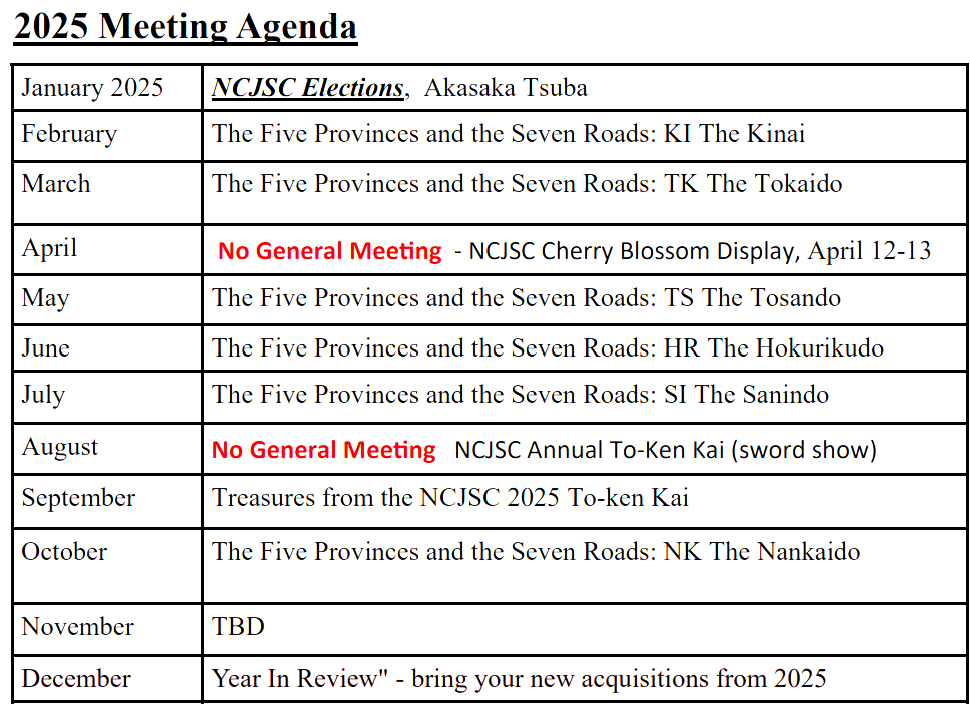 Membership to NCJSC (Northern California Japanese Sword Club), Monthly news letters, kanteiĀ