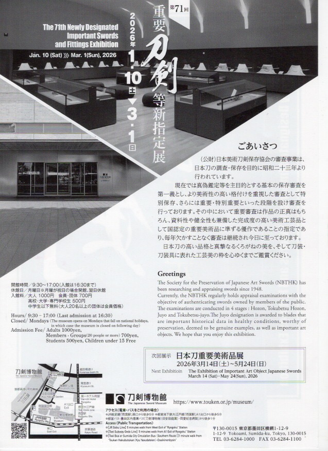 Juyo 71 exhibition list (英語))第71回重要刀剣等新指定展目録Download Post navigation Happy New Year – 2026 Year of the Horse